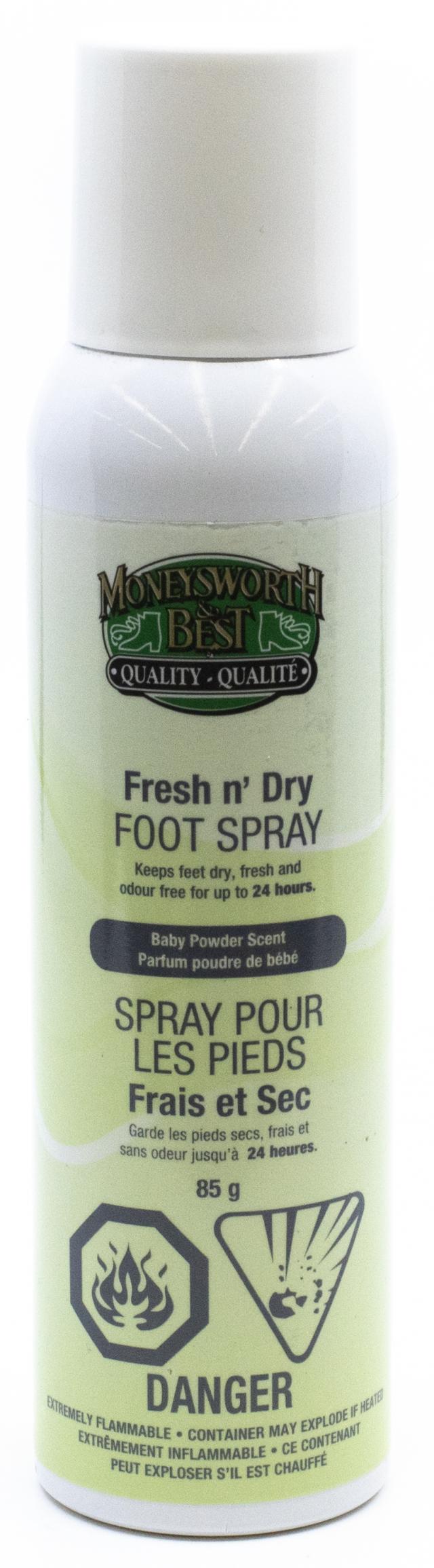 Antiperspirant and deodorizing formula that helps keep feet dry, feeling fresh and odour free all day by neutralizing odour and reducing perspiration. Great for spraying on bare feet before wearing footwear in warmer weather. Baby powder scent.