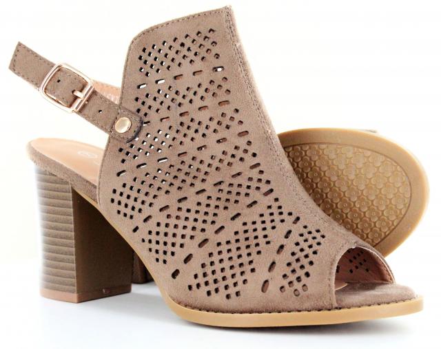 Faux Leather Upper Heel Sandal Features An Open Toe with Perforated Detailing