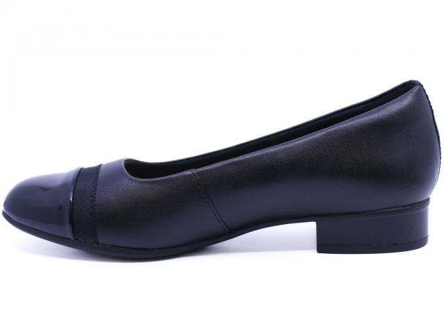 A pair that allows you to be at ease throughout your day, these women's Clarks Juliet Monte black wide dress shoes channel the gap between comfort and style. A textile upper featuring a grosgrain ribbon detail and a contrast toe elevates this ballet-flat inspired style. Its short heel and durable rubber outsole make it an easy choice for workweek wear, and Ultimate Comfort features including an Ortholite® footbed wick away moisture and dull impact.