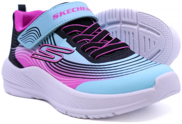 Get active in fun, colorful style wearing Skechers Microspec Advance. This sporty design features a multicolor mesh upper with haptic print overlays, stretch laces, an adjustable instep strap, and a cushioned comfort insole.