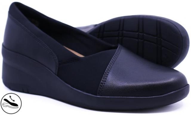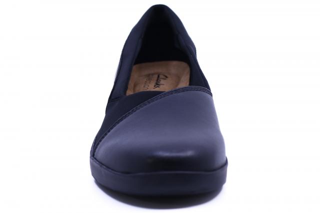 Upgrade your style with these women’s Clarks Suttyn Walk black heeled dress shoes. Made of leather upper, these wide width dress shoes have a round toe and an easy slip-on design. The textile lining and sockliner provide a comfy feel. The Ultimate Comfort footbed with targeted cushioned heel pad offers superior underfoot cushioning. A durable TPR outsole with wedge heel ensures stable footing while giving you a slight lift.