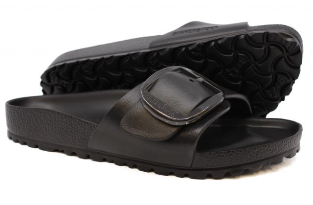 This is a new and modern interpretation of the BIRKENSTOCK classic Madrid. This version features our popular Big Buckle made from a stainless synthetic material and makes an impression with its durability and minimalist design. Modeled on the cork sandal, it is made from the ultra-lightweight and highly flexible synthetic material EVA. The high-quality, odor-neutral EVA has been tested for harmful substances and combines numerous positive attributes: it is very light, highly elastic, shock-absorbent, water-resistant, and skin-friendly.