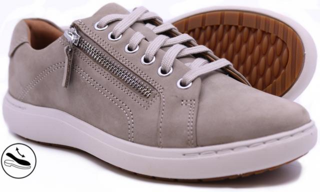 Stay light on your feet in sports-inspired sneaker Nalle Lace. Crafted from nubuck, this everyday silhouette combines casual aesthetics with Clarks' iconic craftsmanship, keeping you feeling put together on off-duty days. We know comfort is key – that’s why we’ve designed this shoe with a supportive Contour Cushion footbed and high-grip rubber sole, guaranteeing steady, supported steps on those busy days.