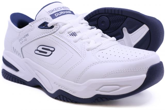 Step into convenient walking comfort with Skechers Slip-ins® Relaxed Fit®: Durham - Delvor. Designed with our Heel Pillow®, this lace-up features a leather and synthetic upper with a cushioned Skechers Air-Cooled Memory Foam® insole.