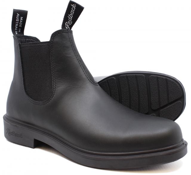 Tough, timeless, and made to perform — the Redback Whistler Chelsea Boot in black delivers everyday durability with effortless Australian style. Built from premium full-grain leather, this handcrafted boot features elastic side panels for easy slip-on wear and a shock-absorbing sole that supports you from work to weekend. The oil- and slip-resistant outsole ensures confident footing wherever you go.
