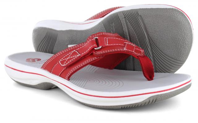 Carefree, casual, and comfortable. This sporty women's flip-flop is soft and lightweight in black synthetic leather, with a fabric thong and fun printed footbed. Effortless summer style for a day at the beach, by the pool, or on the boat.